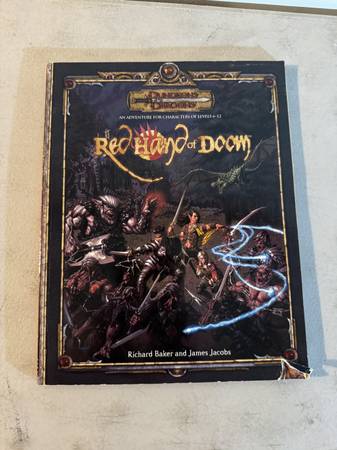 Hi I am selling my 1st edition Dungeons & Dragons Red Hand of Doom d20 3.5 (some damadge to bottom of book) soft cover book. If you have any questions please message me thank you.