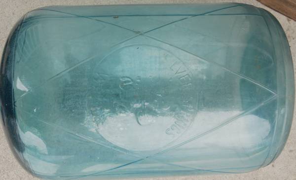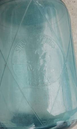 1-Vintage Silver Springs water 5-gallon water bottle embossed "Silver Springs Water" design and a geometric diamond pattern with a wooden crate. 100. Dollars