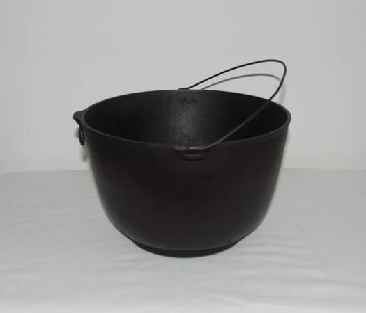 Early Pre-1914. Off Center "WAGNER" Curved Logo # 5 Cauldron Pot. WAGNER #5 Cast Iron Cauldron Pot is very Rare Some pitting on inside bottom, Restored and Seasoned. 7" Tall x 11" Diameter Found in...