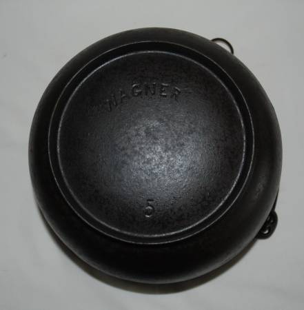 Early Pre-1914. Off Center "WAGNER" Curved Logo # 5 Cauldron Pot. -...
