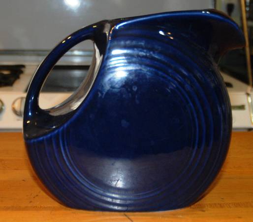 Fiesta Cobalt Blue Disc/Disk Large Water Pitcher Fiestaware Contemporary No cracks no chips. Sorry i have hard water only water spots. Measures approximately: 7 1/4” tall, 8” back to front, and 4...