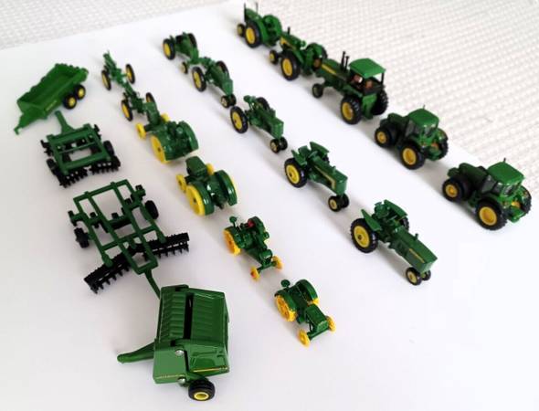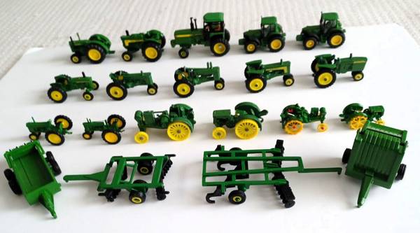 John Deere Ertl Farm Country Tractors and Other Farm Equipment. Lot of 20. 1/64 Scale about 1 inch to 2 inches long