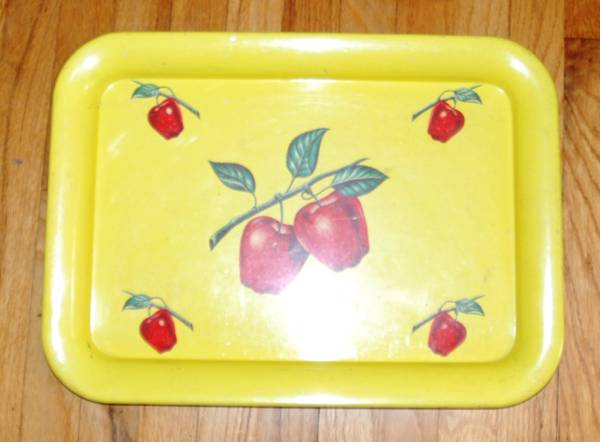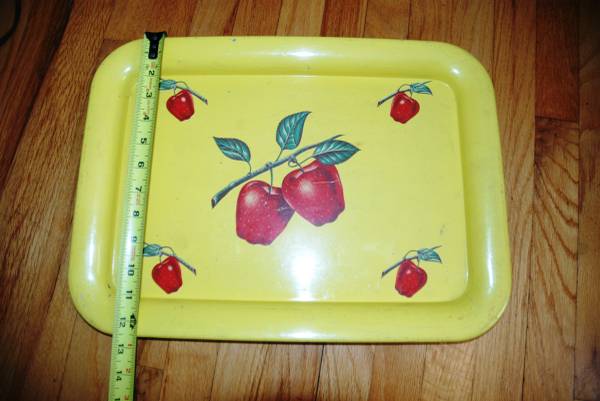 Metal Serving Tray Yellow with Apples 12.5" x 17.5"