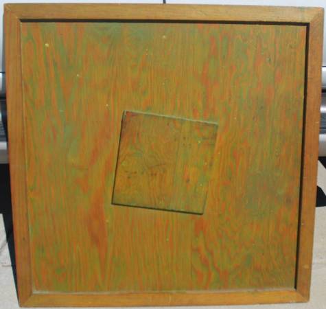 VINTAGE HOMEMADE GAME BOARD. HAND PAINTED. 25" X 25". CONDITION: OVERALL VERY GOOD. COLORS ARE VIBRANT. MINOR PAINT SMEAR AND MINOR WEAR.