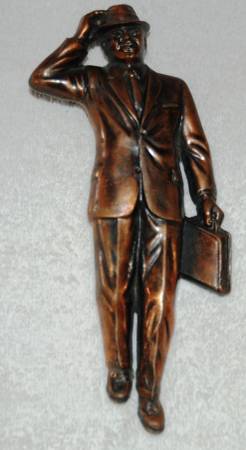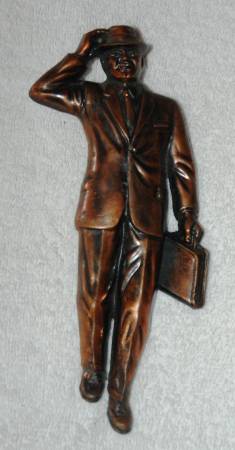 Promotional 8" Metal figurine of a man in suit and tie with briefcase.