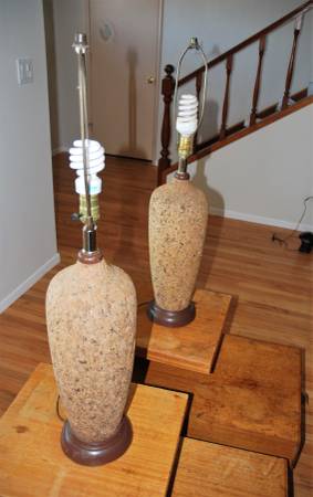 Vintage Mid Century Cork Table Lamp Pair / California Cork Lamps / Atomic Ranch Décor / Matching Cork Lamps / Rare Accent Lamps