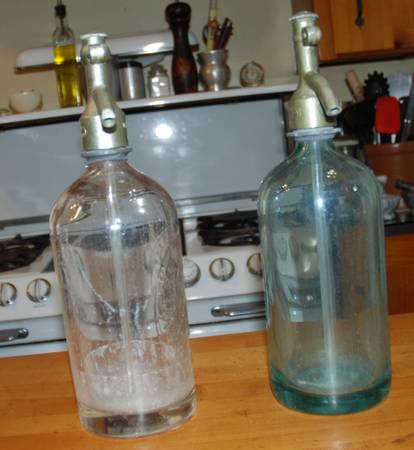 1. Weber & Langer Glass Metal Seltzer Bottle WIEN XVII Weber & Langer Seltzer Bottle Made in Germany, dated 1953. Stands 12" tall, 4" wide. Embossed on glass: "Weber & Langer Wien XVII". Metal fountain portion is stamped: "Karl Schultz Wien Rein Aluminum" as well as "Weber & Langer Wien XVII". Also, the number "10" is stamped on metal portion. In good, basic condition. I don't know how to open the bottle to clean the inside, so there is some spotting. I don't know if this bottle can still be used as a working seltzer dispenser.