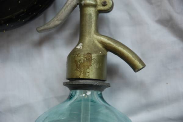 2. Weber & Langer Glass Metal Seltzer Bottle WIEN XVII Weber & Langer Seltzer Bottle Made in Germany, No Date, Etched Green Glass. Stands 12" tall, 4" wide. Metal fountain portion is stamped: "Weber & Langer Wien XVII". Also, the number "10". Can not make out the other Stamp. See picture. In good, basic condition. I don't know how to open the bottle to clean the inside, so there is some spotting. I don't know if this bottle can still be used as a working seltzer dispenser.