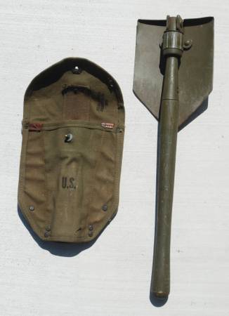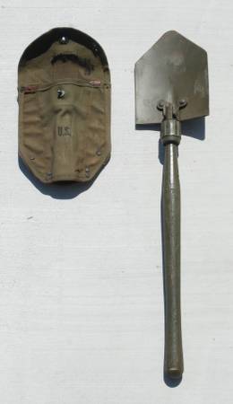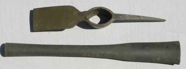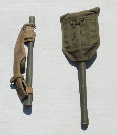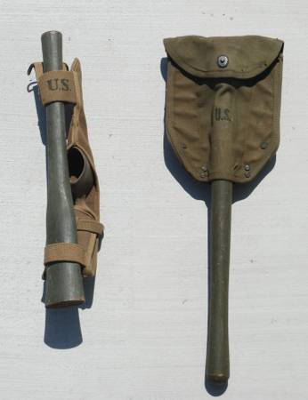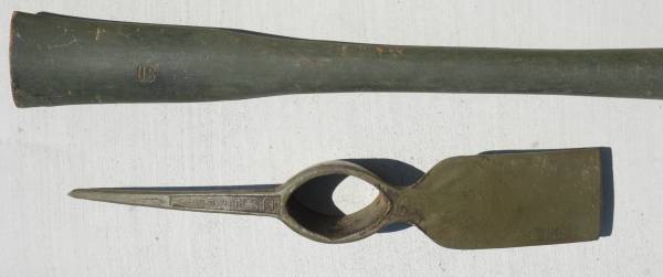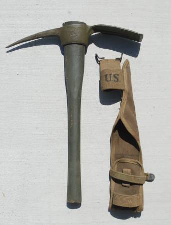 U.S. Army E-Tool Entrenching Tools. Shovel, Pick Mattock 1942 Thru. 1945 U.S. ARMY M-1910.1944 Plumb PICK MATTOCK AXE HANDLE & 1942 Canvas products of Kansas City Carrier OD3. All pieces...