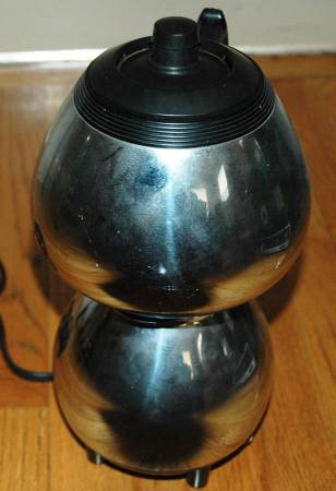 Vintage 1940's SUNBEAM C30 Chrome & Bakelite VACUUM COFFEE MAKER Double Bubble. Bad pictures no rust, shines up nicely. SET IS 100% COMPLETE & INCLUDES: Bottom pot, siphon top pot, permanent filter, 2 prong electrical cord, and the lid. Complete and Working.