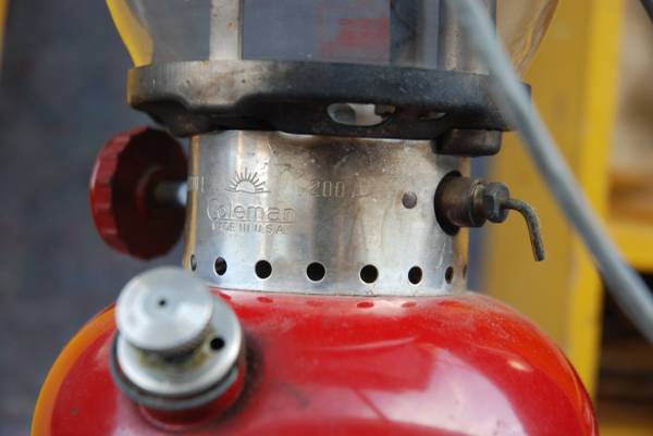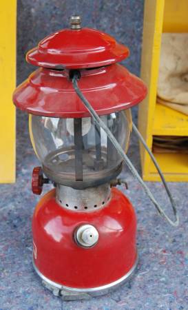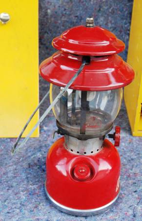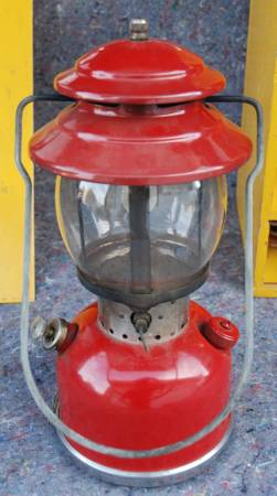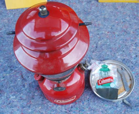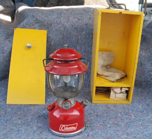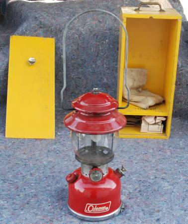 Vintage 1965 Coleman Lantern 200A Red Single Mantle Dated 10/65 Custom Case, bottom accessory, Extra mantle A little Dusty a couple grease smudges.. Pressurizes