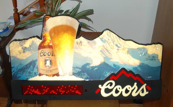 Vintage 1990 Coors Rocky Mountains Motion LED Scrolling Beer Message Sign Light