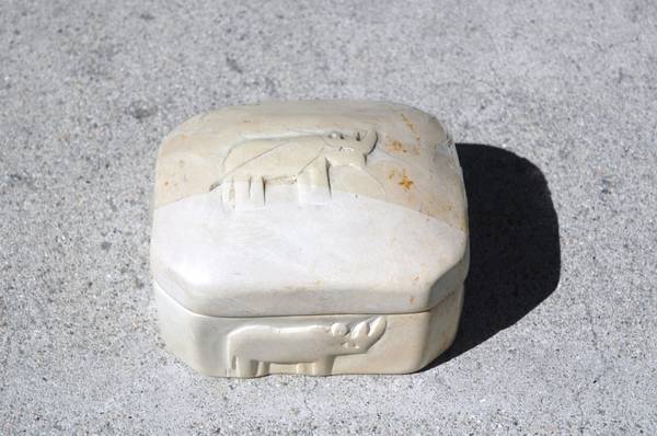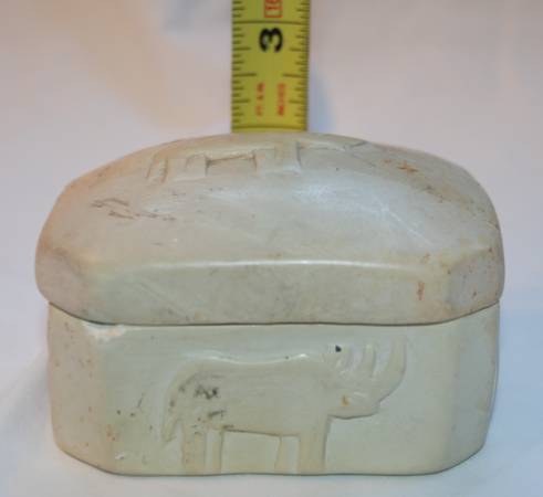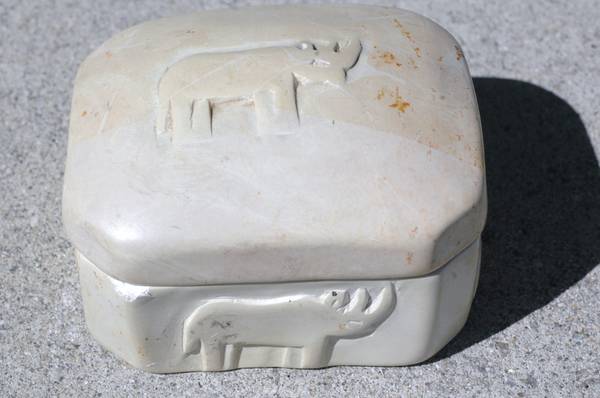 Vintage Hand-Carved Rhino Soapstone Jewelry/Trinket Box Made in Kenya