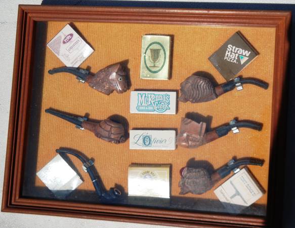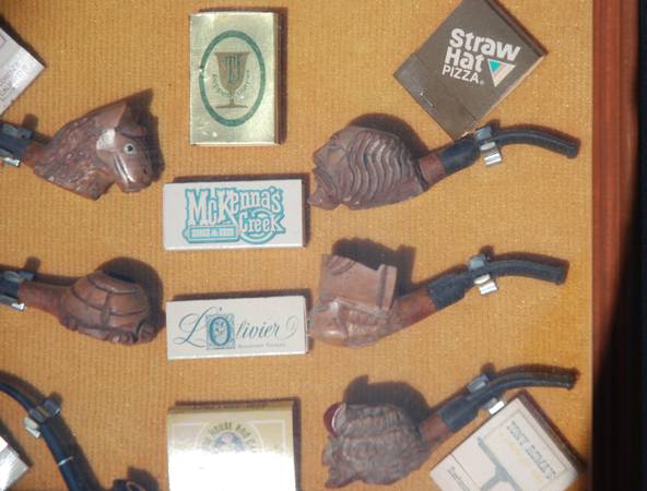 5 Vintage Hand Carved Smallish Smoking Pipes. Most of the Match books are from restaurants that are now closed. Do restaurants even give out match books anymore?