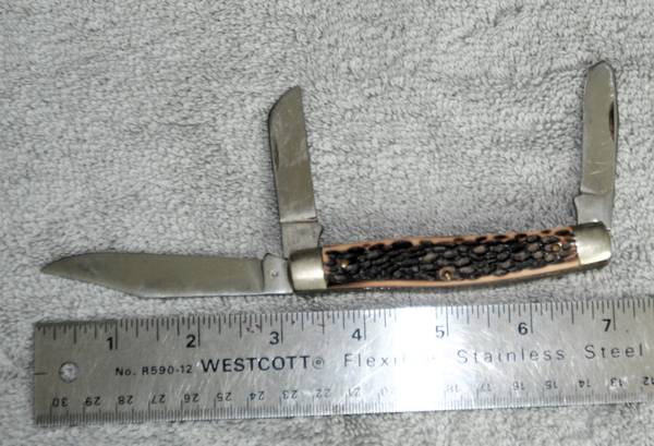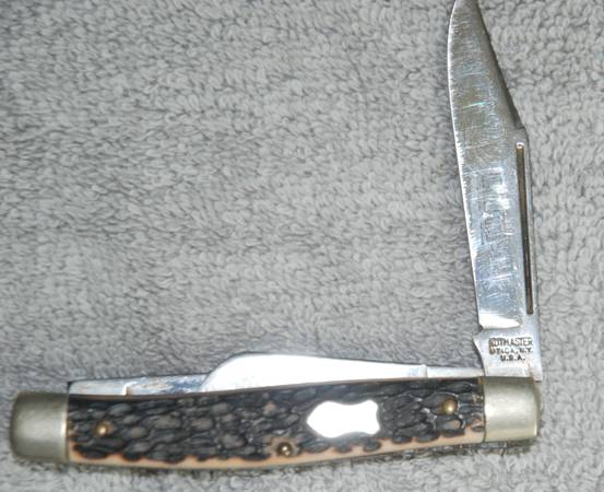 VINTAGE KUTMASTER 3 BLADE STOCKMAN POCKET KNIFE - UTICA, N.Y. U.S.A. VINTAGE KNIFE/3-BLADE KUTMASTER, UTICA, N.Y. U.S.A./BLACK STAG/VERY GOOD KNIFE Vintage - KUTMASTER - 1970's - Utica, NY -...