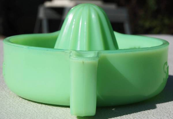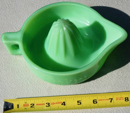 VINTAGE MCKEE JADEITE SUNKIST JUICER CITRUS REAMER GREEN MADE IN USA Little Chip left rear.. See picture