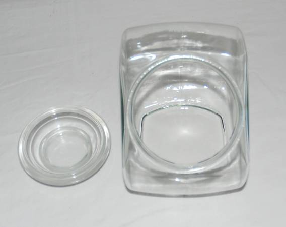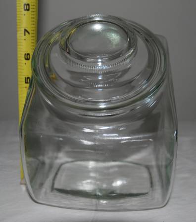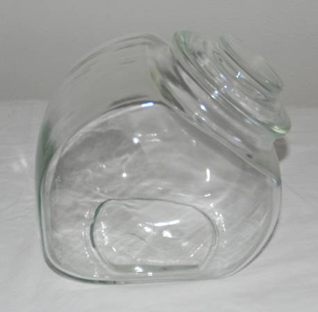 Vintage Bartlett Collin’s Clear Glass Tilted Cookie Candy Jar w/ Glass Lid, General Store Diner Decor No Cracks no chips