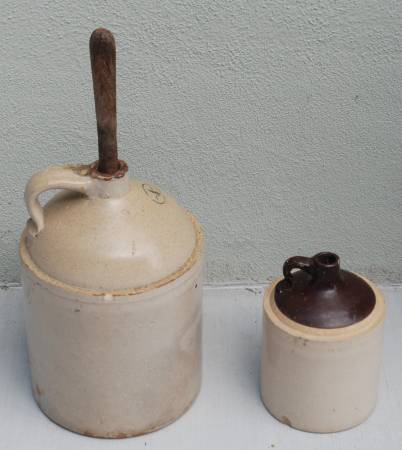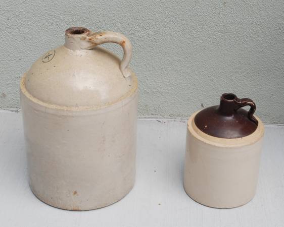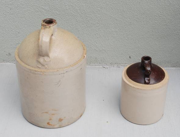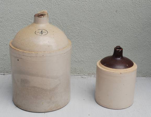 2 Whiskey Jugs Tan and Brown Crock 4 Gallon, 2 Tone One Gallon -...