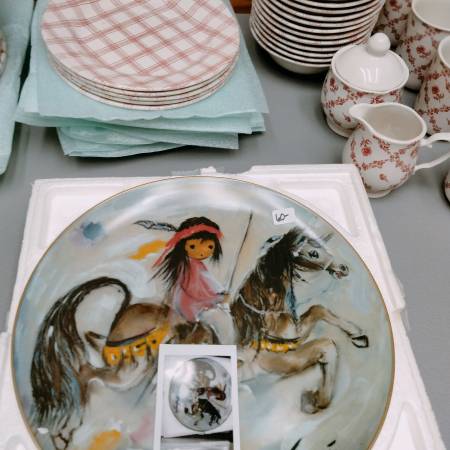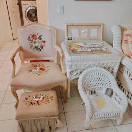 Antique, collectibles, Settee, rattan couch, chairs, dining set, dining chairs, beds Cal king and full size, patio set, TV's, new dish sets, recliners, clothes, paintings, pictures, antique canes and so much more to see. Don't miss out!