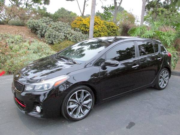 2017 Kia Forte5 SX Hatchback, 200 HP 1.6L Turbo, 6-Spd manual, Black w/ Black Leather, Moonroof, Navigation, Premium Sound, Rear Camera, UVO Entertainment System, Bluetooth, Heated & Cooled Seats, Full Power Driver's Seat w/ Lumbar Adjust, Dual Auto Climate Control, Tilt/Telescopic Leather Wheel, Memory Seat, Push Button Start, Auto Folding Side Mirrors, Auto Dimming Rearview Mirror, Front, Side and Front & Rear Head Airbags, Traction Control, Stability Control, Hill Start Assist, Sport Tuned Suspension, Rear Spoiler, Fog Lights, 18" Alloys, Tinted Glass, Keyless Entry, MSRP over $27K, One Owner w/ 83K miles, $10,850. Vin # 3KPFN5A31HE065122, Carfax available, Shown by appt in Carlsbad. 760-822-9418