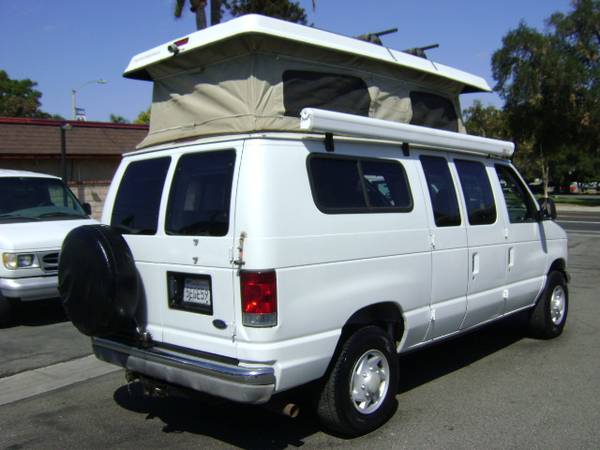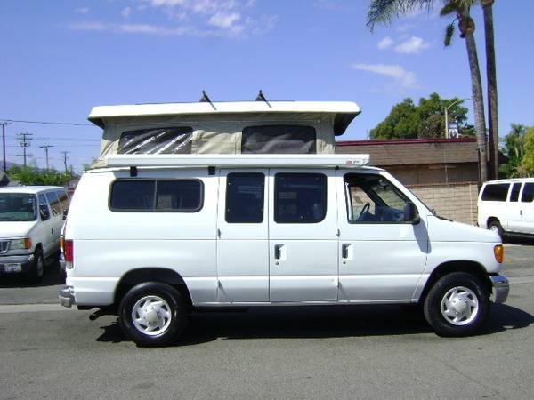 2003 Ford Econoline E350 SPOTSMOBILE Pop Top Camper Van ONLY 61,000 LOW MILES! 1 Owner, Standard Length (Non-Extended) 1-Ton Model, Tow Package, Fully Loaded, Power Windows, Power Door Locks, Power Mirrors, Tilt Wheel, Cruise Control, Air Conditioning, RV Camper, Pop Top Camper! Privacy Glass ***NEW TIRES. NEW BATTERY. NEW TRANMISSION OIL & FILTER*** Great For RV Camper Recreational Cargo Use! AM/FM Radio, LOW LOW MILES! ONLY 61,000 MILES! Great for Travel & Tour! V10 6.8L Gas Engine and much more. Give us a call at 951 735-6269 or toll free at 1-877-826-7253