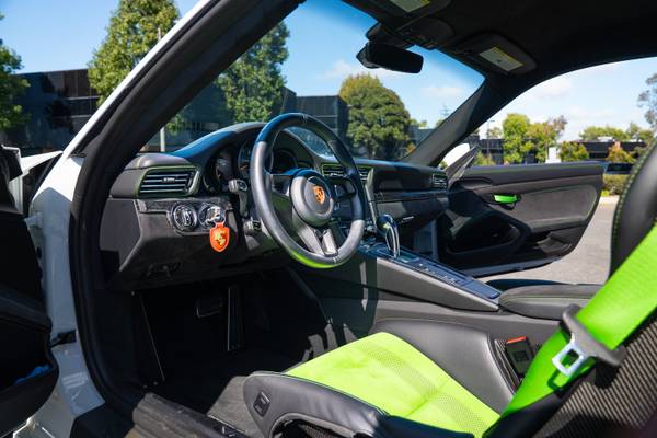 The 991.2 GT3 RS is Porsche’s ultimate naturally aspirated track weapon, revving to 9,000 rpm and achieving 0–60 mph in just 3.0 seconds. What sets this example apart is its Sonderwunsch homage to the 1973 Carrera RS—a bespoke specification that connects Porsche’s motorsport heritage with modern engineering excellence. Inside, the cockpit features carbon bucket seats, Alcantara throughout, and weight-saving measures derived directly from Porsche’s GT racing program. Outside, the car’s Weissach Package adds extensive carbon fiber components, while the full-body PPF preserves its flawless finish.