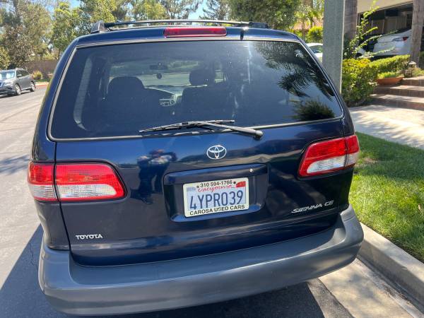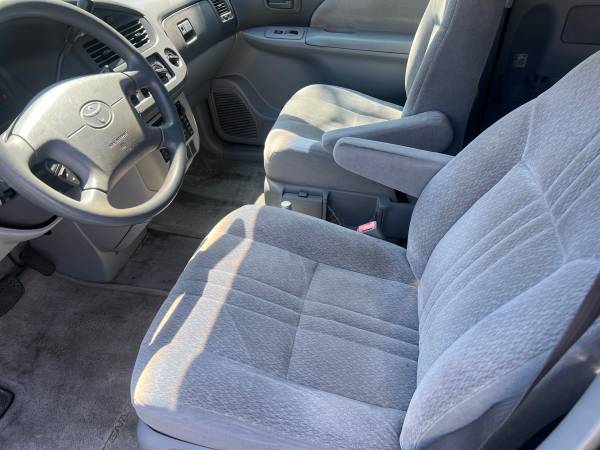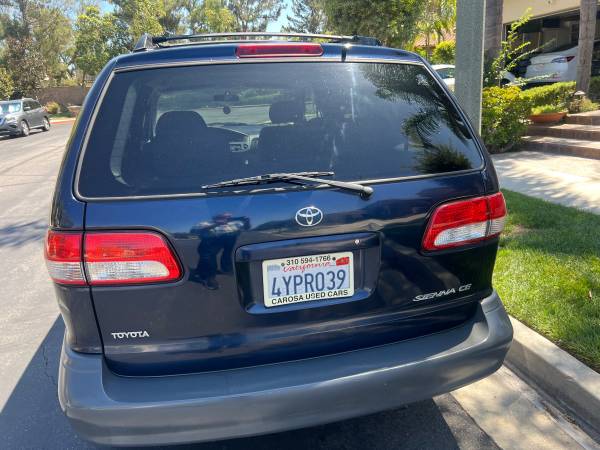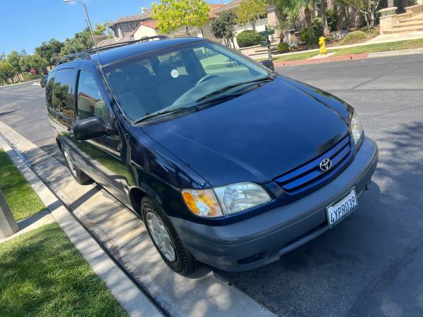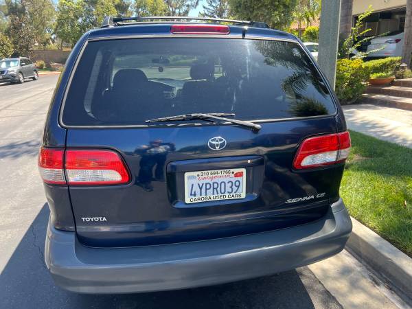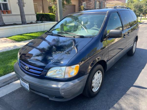 2003 Toyota Sienna CE with a clean Carfax, 10 service records, and only three previous owners. This Sienna is in excellent condition and gets 18 combined MPG. Options include power locks, power windows, power mirrors, cruise control, 3rd-row seating, steering wheel controls, multi-zone climate control, and an AM/FM CD player. This vehicle has 112158 miles, and the asking price is $4495. If you are interested in a test drive, please call 714-815-5836 to check for vehicle availability, or visit us at dandmauto.com.