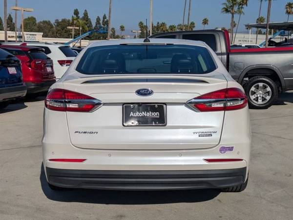 * White Platinum Metallic Tri-Coat * Leather Seats * Navigation System * Lane Keeping Assist * Keyless Start * Rear Spoiler * Cooled Front Seat(S) * Ebony; Leather-Trimmed Heated/Cooled Bucket Seats * Engine: 2.0L Ivct Atkinson Cycle I-4 Hybrid * Equipment Group 850A * Front License Plate Bracket * Transmission: EcvtThis vehicle includes a Money-Back Guarantee* and passed our precise inspection process. Best of all the price you see is the price you pay. No haggling. No back and forth. No pressure. And this price is so good it is guaranteed. *Money-Back Guarantee is valid for 5 days or 250 miles, whichever comes first. Subject to certain terms and conditions. See store for details. Some restrictions apply.You can find this 2020 Ford Fusion Plug-In Hybrid Titanium and many others like it at AutoNation Ford Tustin. This Ford includes: ENGINE: 2.0L IVCT ATKINSON CYCLE 4 Cylinder Engine Plug-In Electric/Gas *Note - For third party subscriptions or services, please contact the dealer for more information.* It's not often you find just the vehicle you are looking for AND with low mileage. This is your chance to take home a pre-owned and barely driven Ford Fusion Plug-In Hybrid. The look is unmistakably Ford, the smooth contours and cutting-edge technology of this Ford Fusion Plug-In Hybrid Titanium will definitely turn heads. You've found the one you've been looking for. Your dream car.