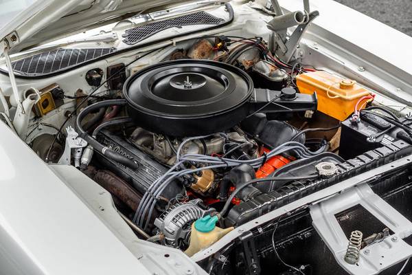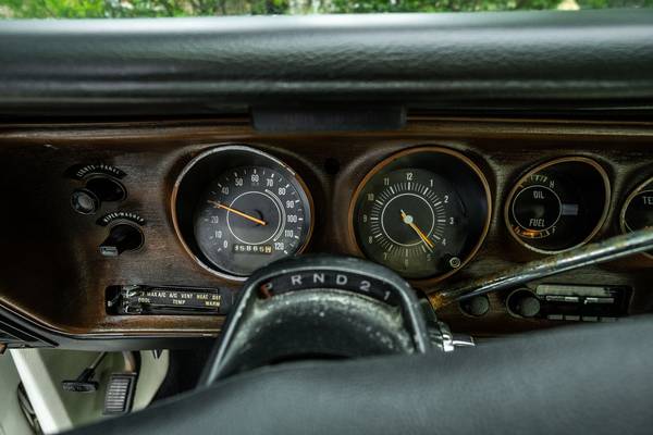 This special order car was well equipped with the 440 CID 280 hp engine, power steering, power disc brakes, power windows, sun roof, and air conditioning, dual exhaust, bucket seats, white paint, and black vinyl top. The body work is remarkably straight and corrosion free, the interior is also in very good condition including new carpeting.