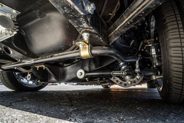Independent from suspension with custom drop spindles, sway bar and adjustable coil-over shocks