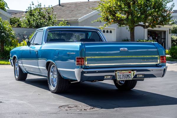 This is a stunning and immaculate El Camino with the perfect combination of old school and new technology. Equipped with a enhanced 327 CID V8 that has been bored .40 over, stroked, and balanced fitted with a Comp cam roller cam guides, Edelbrock E-Street aluminum cylinder heads, Edelbrock Performer intake manifold, MSD ignition, Atomic Electronic Fuel injection, Tremec 5 speed manual transmission, Atomic twin plate clutch, Moser posi-traction, 373 gears, 12 bolt housing, 4 wheel Wilwood disc brakes, Dakota digital dash board, US Mag wheels, Grffin aluminum radiator, coil-over KYB shocks, Magna-flow mufflers, and Craftttec bed cover.