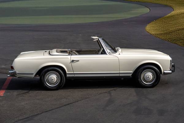 The Mercedes-Benz 230SL was the first variant of the W113 SL-Class to be introduced. Debuting in 1963, the 230 SL featured a 2.3L inline six engine that produced 148hp, which it sent to the rear wheels via manual and automatic transmission options. These cars received the "pagoda" nickname due to its unique detachable hardtop. This name carried on to its successors, the 250SL and 280SL. Production of the 230SL lasted until 1967, with an estimated 19,831 examples built.