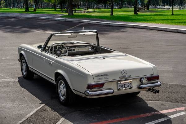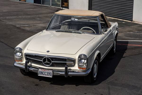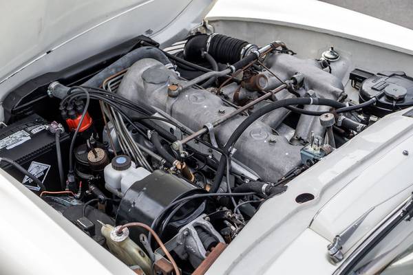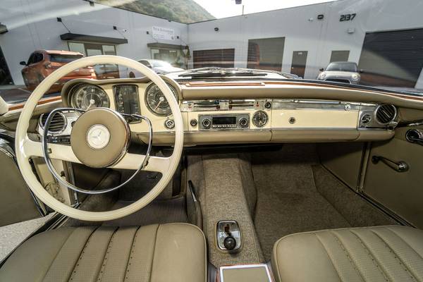 This Mercedes 230 SL is exempt from California smog certification requirements and comes with a clean California title, owner's manuals, hard top, soft top, factory tools, spare tire, and jack.