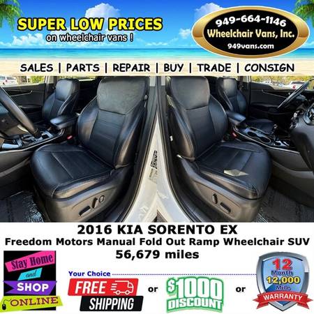 2016 Kia Sorento EX Wheelchair Van SUV Exterior Color: Snow White Pearl Interior Color: Dark Gray Engine: 2.0L Turbo I4 240hp 260ft. lbs. Fuel: Gasoline Transmission: Automatic Drivetrain: Front...