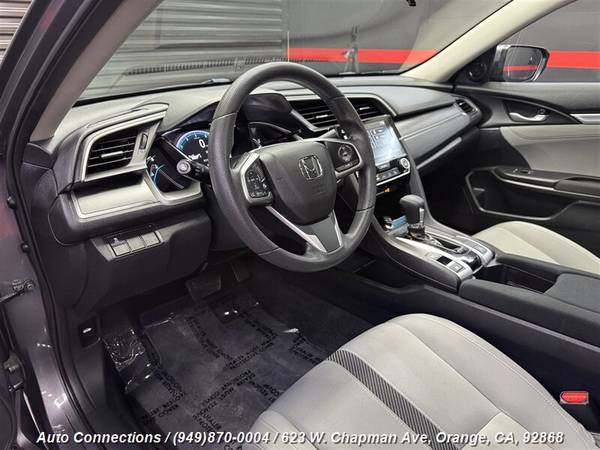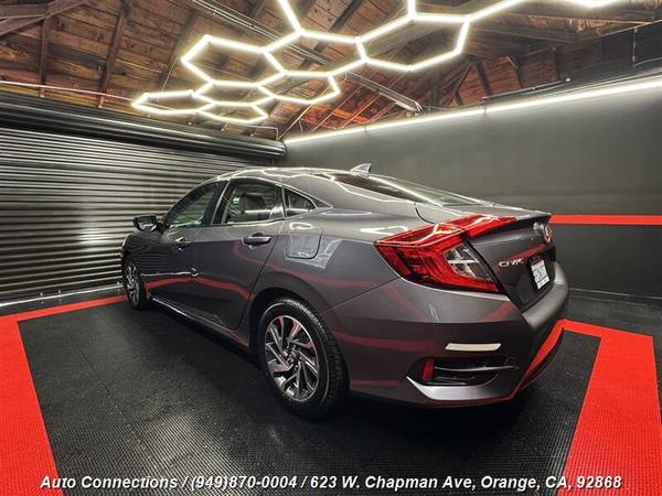 Introducing the 2018 Honda Civic EX, a compact sedan that combines efficiency and performance. Powered by a 2.0L I4 engine producing 158 horsepower and 138 ft-lbs of torque, this vehicle offers a dynamic driving experience. With under 57,000 miles, averaging less than 8,000 miles per year, it is in excellent overall condition. The Civic EX comes equipped with a range of factory default features, including Honda Sensing safety suite, a power moonroof, a 7-inch touchscreen display with Apple CarPlay and Android Auto integration, Bluetooth connectivity, and a multi-angle rearview camera. This vehicle also boasts a clean CARFAX report and has had only one owner, ensuring peace of mind for its next owner.