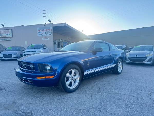 2007 Ford Mustang V6 Deluxe with a clean Carfax and only one previous owner. This Mustang is in pristine condition and produces 210 horsepower with 240 lb-ft of torque. It also comes equipped with a 5-speed manual transmission, which is generally considered to be more reliable than the automatic counterpart. Options include power locks, power windows, power mirrors, an AM/FM CD player, keyless entry, and leather seats. This vehicle has 112,853 miles, and the asking price is $6,495. If you are interested in a test drive, please call 714-815-5836 to check for vehicle availability or visit us at dandmauto.com.