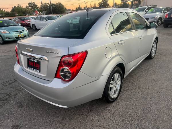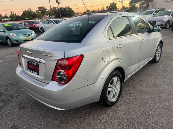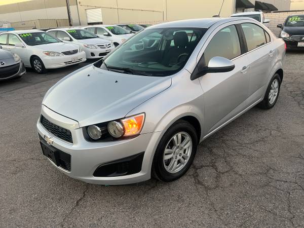 2015 Chevrolet Sonic LT clean inside outside , one owner, with 14 service record. This Sonic is in great condition and gets 28 combined MPG. Options include power locks, power windows, power mirrors, alloy wheels, cruise control, Bluetooth, steering wheel controls, and a backup camera. This vehicle has 58219 miles, and the asking price is $5,995. If you are interested in a test drive, please call 714-815-5836 to check for vehicle availability or visit us at dandmauto.com.