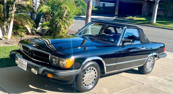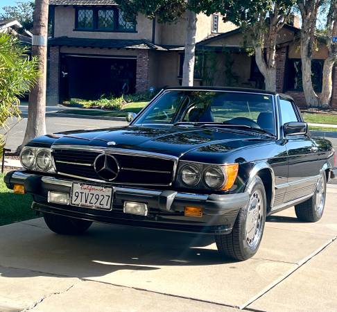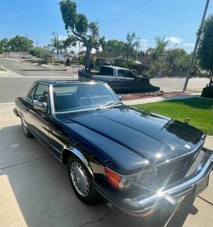 Pristine 1987 Mercedes 560SL Convertible with Hardtop. Black exterior paint with Chrome Trim Package. Black leather interior with no rips or tears. New brakes and rotors, new tires, new shocks, new bushings, new tie rods, new valve cover gaskets, mew motor mounts, new convertible top, new transmission mounts, new intake plenum and gaskets, new fuel filters, new air filters. Brand new Bluetooth audio system with built in phone. New rear speakers. Needs nothing! In prime condition with maintenance performed at classic Mercedes service center in Orange. No accidents and not a salvage. Clean title in hand. No Trades or selling agents. Runs and drives fantastic. Hardtop has carrier and stored.