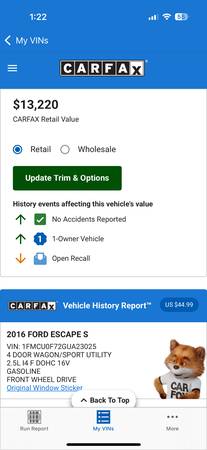 2016 FORD ESCAPE S (2.5 liter 4 cylinder engine) great on gas! with only 28,000 miles!