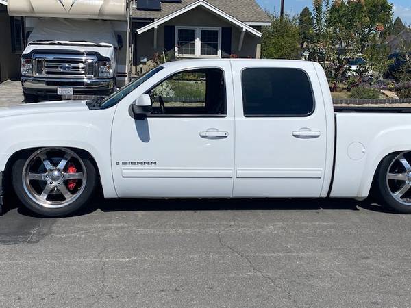 gmc crew cab,5.3, auto trans,black leather interior, accuair e level system, custom suspension,tucks 22's.must see truck