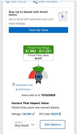 Maintenance history: Up to date on all maintenance. Oil and filter changed every 5k, air filter changed every 30k, transmission fluid changed at 60k and 120k intervals, spark plugs and coils changed at 60k and 120k, recent car battery and brake fluid flush, front/rear differential fluid changed at 150k, new rotors and brakes, all season tires 8/10.