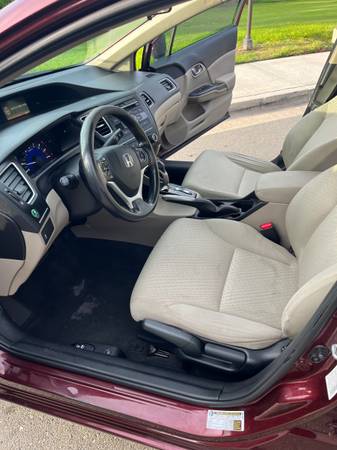 Selling my 2015 Honda Civic. The car has no mechanical problems and runs super smooth, it is very clean in the interior. Tags and registration are all up to date. It has backup camera and Bluetooth connectivity.