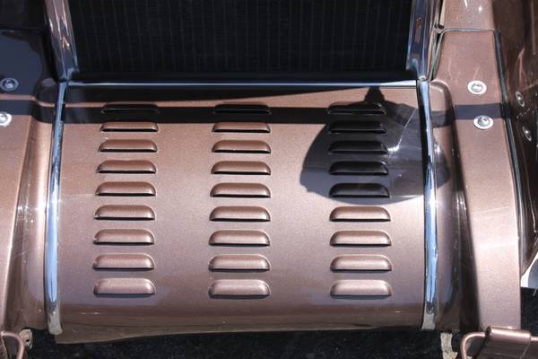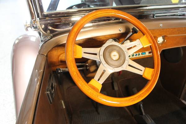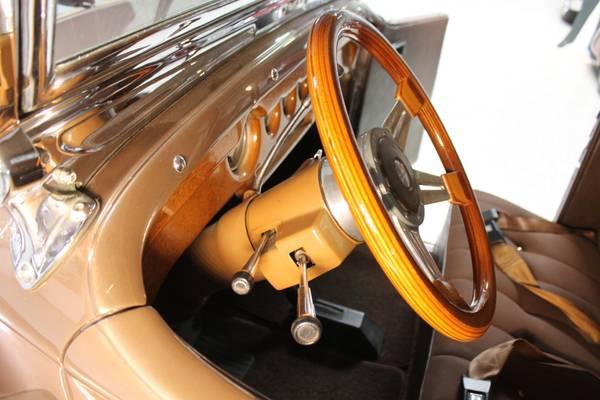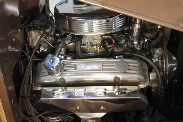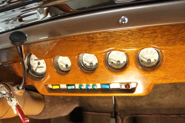 Great Bowtie Emblem and moto-meter hood ornament. Fortunately, there is a modern, functioning temperature gauge in the instrument panel. All the instruments are mounted in a beautifully finished dashboard. All those instruments work, too.