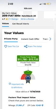 π **FOR SALE PRIVATE PARTY: 2019 Fiat 500e β Excellent Condition!** β‘