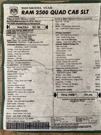 2003 Dodge Ram SLT Cummins Deisel Well Maintained Brand New Batteries, Just serviced. 18K on New Injectors. Runs Great! Banks Brake Exhaust Tow Package and more. Paint not that great.