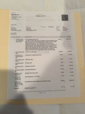 Many upgrades: A/C and Heat, ELITHIUM 5kw-200a/h battery pack w/ 6.6kw charge, trailer hitch, custom paint in and out, 16” Matrix gloss black wheels w/ 235/70 16 General Grabber AT2 tires. Top speed 40mph, Range 40-55 miles . Lees than 3,000 miles -perfect condition.