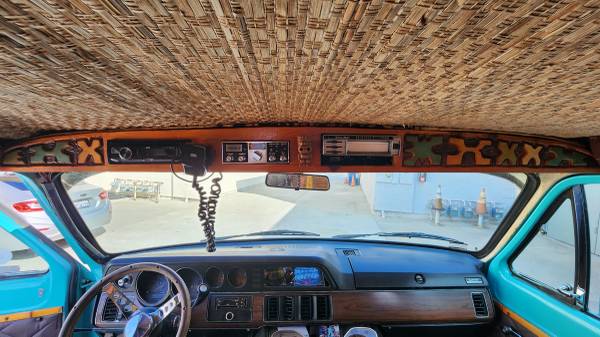 Bitchin' custom hand carved overhead console, with JVC Blue tooth CD player/Radio, 4 speaker system, 40 Channel 1979 working Realistic CB, with Whip Antenna, 8 track player that works.