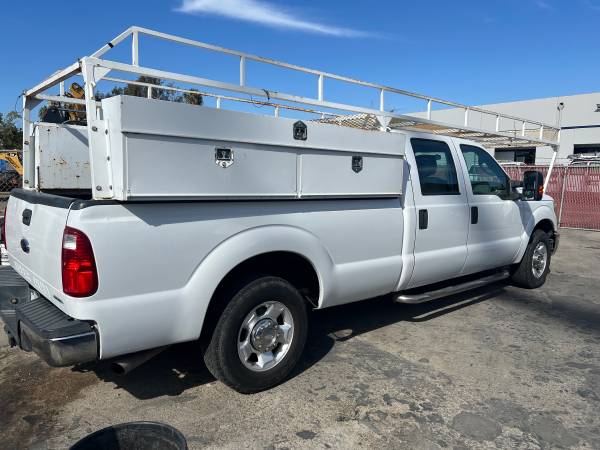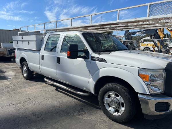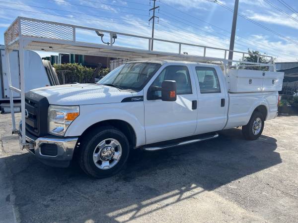 Ford F250 crew cab, long bed with full 20' rack and 8' fitting boxes. Truck is in good condition. Air conditioning works great.
