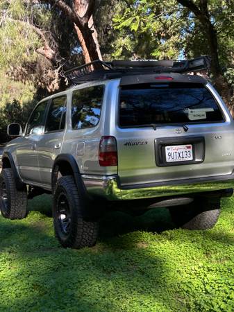 Very clean inside and out 2000 Toyota 4Runner with a 3 inch lift has 182,000 miles with routine service every 3000 miles just replaced water pump timing belt thermostat radiator valve covers pulleys has brand new magna flow exhaust way too much to list all original parts from Toyota dealership have paperwork to prove it. This truck has zero issues any questions feel free to contact me show contact info