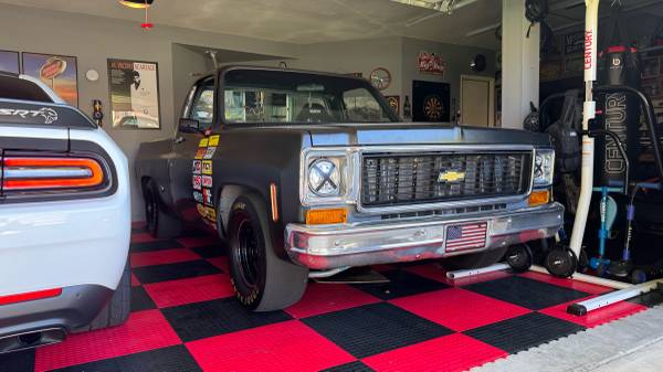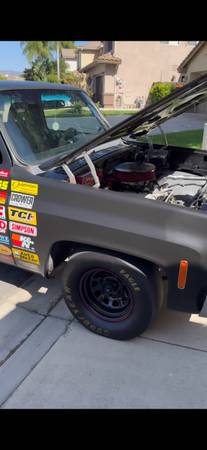 1974C10, built 355 sbc (has an exhaust leak driver side, needs new gaskets) 3 speed b&m trans, new quarter panels, hood, and door skins, all new auto meter gauges, truck was just completely gone through, all new wiring, new sparco seats with 4 point harnesses, sparco steering wheel, new carpet, new wheels and goodyear drag tires, brand new black widow exhaust, upgraded suspension. to much to list.